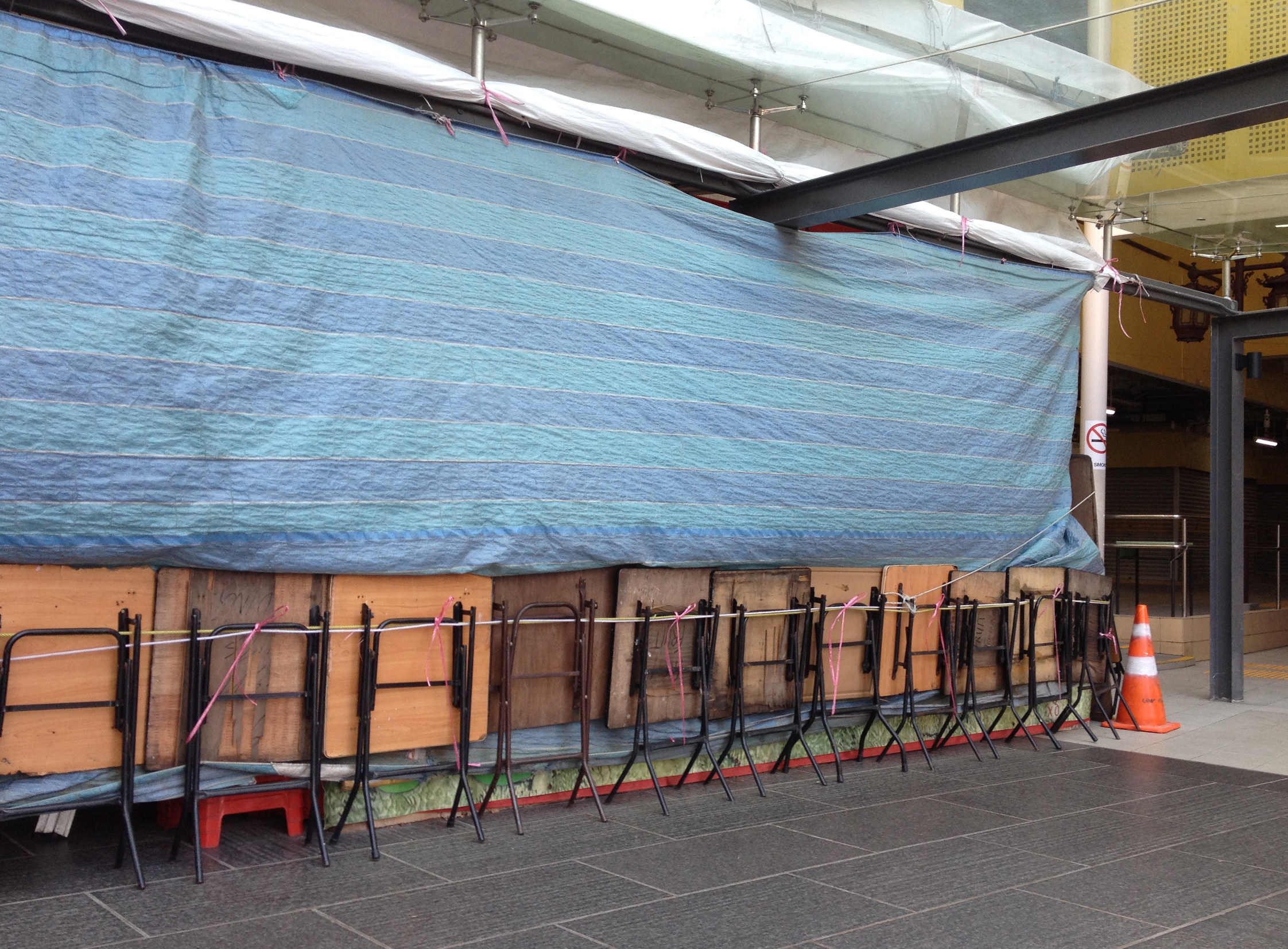 A basic dwelling needs only a roof, to protect us from the weather. A universe of self-built roofs can be commonly observed at construction sites, protecting workers from the scorching sun. Self-built roofs can also be seen at shop fronts as a strategy to extend shop space or to invite potential customers in. These roofs can later be transformed into shutters when the shop closes for the day. The Sungei Road street market is an advanced example of such a typology. With the popularity of small urban farm plots, another development of the self-built roofs can be seen as well. These roofs are an act of balanced design, where the need of the farmer to be protected from the sun is balanced with the need of the sun by the plants.