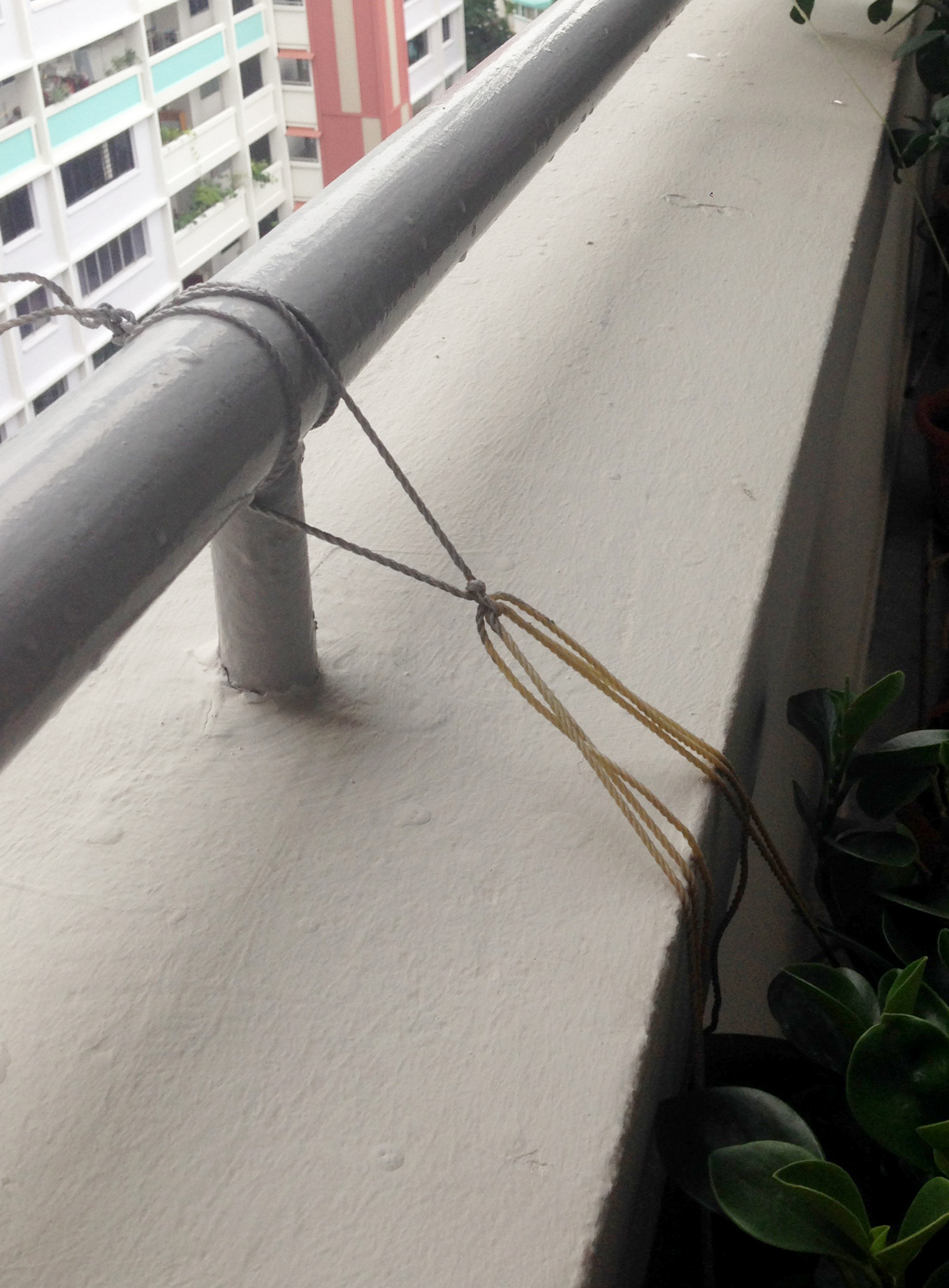 A self-built at its simplest could seem spontaneous or seemingly unthinking. Its function can sometimes only be understood by the person that build it. As an observer, we can only speculate its true function. A scribble on the floor to mark a territory or a memory. A series of ropes tied to a railing may suggest a hanging function. Sometimes it may not be even for a practical function but purely decorative, such as a key chain attached to a mundane water pipe.