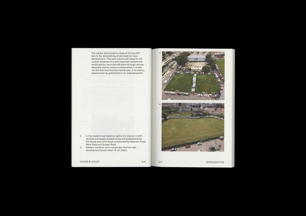 This work attempts to capture the vibrant spirit of the market by focusing on a very specific area of interest — the ‘system’ of hooks and holes found on the road surfaces where the market sits, one that both enables and governs the setup, organisation, and functioning of market stalls. This also reveals the behaviours and interactions between vendors and customers of this market that is no longer around.